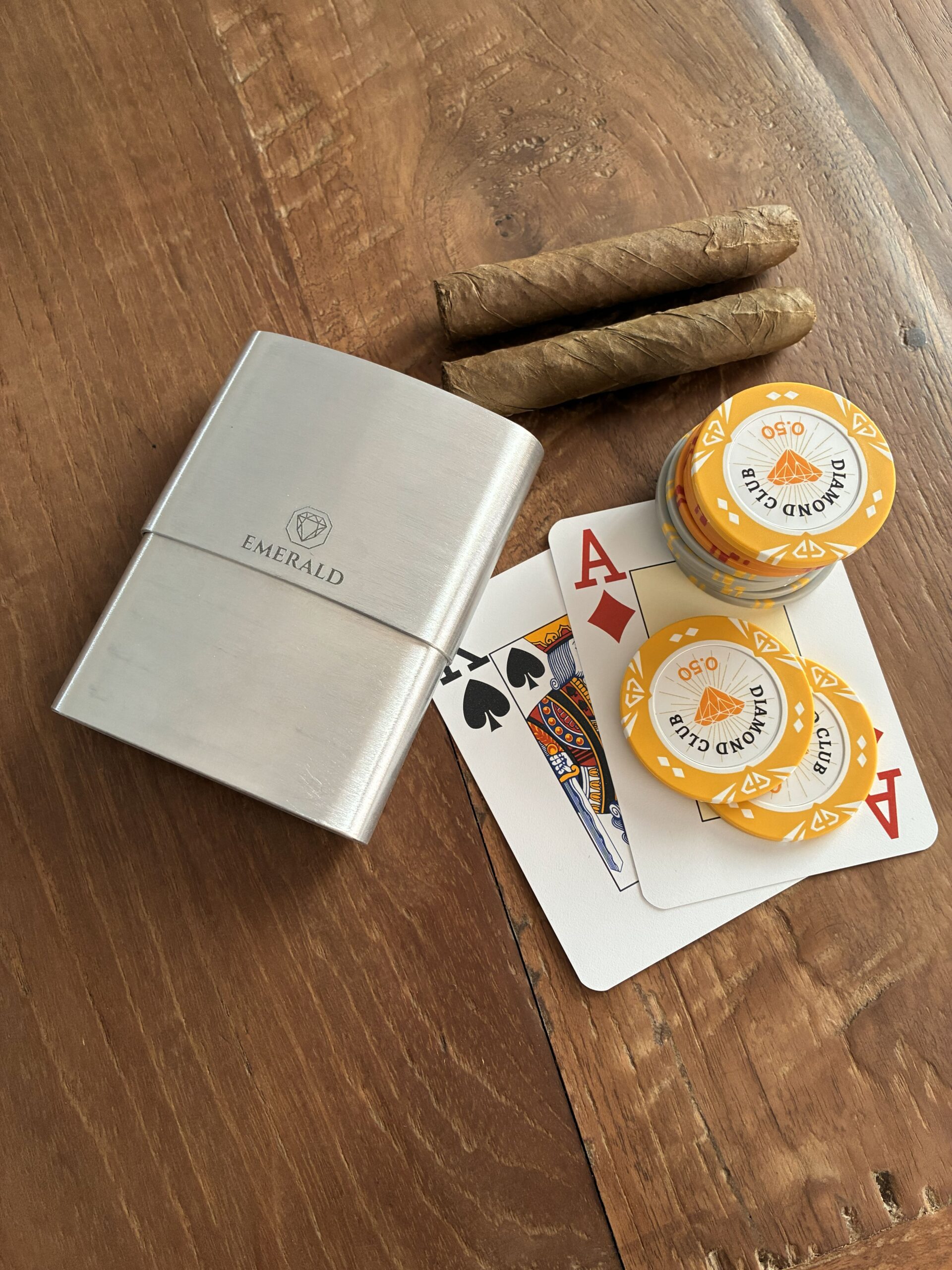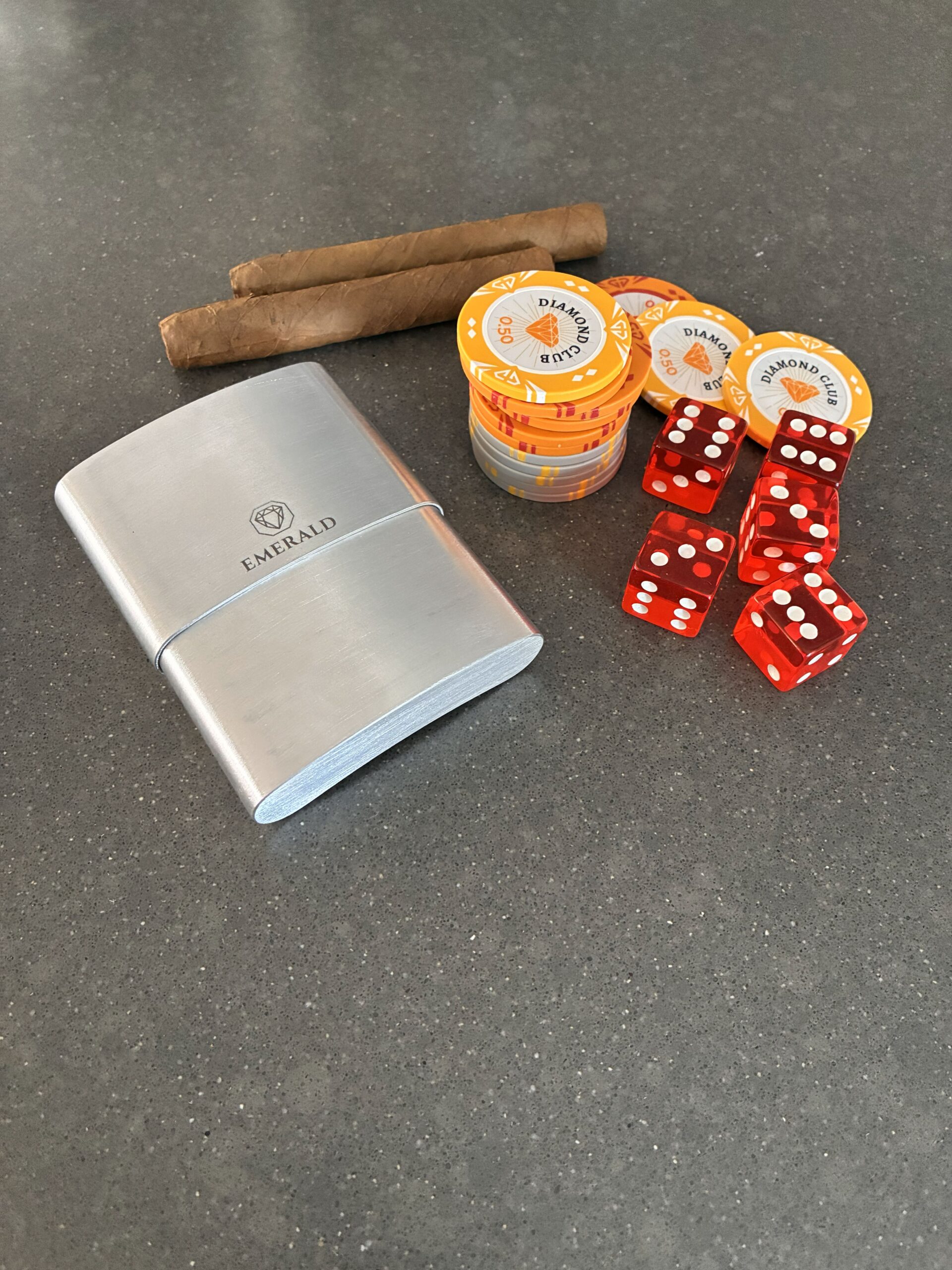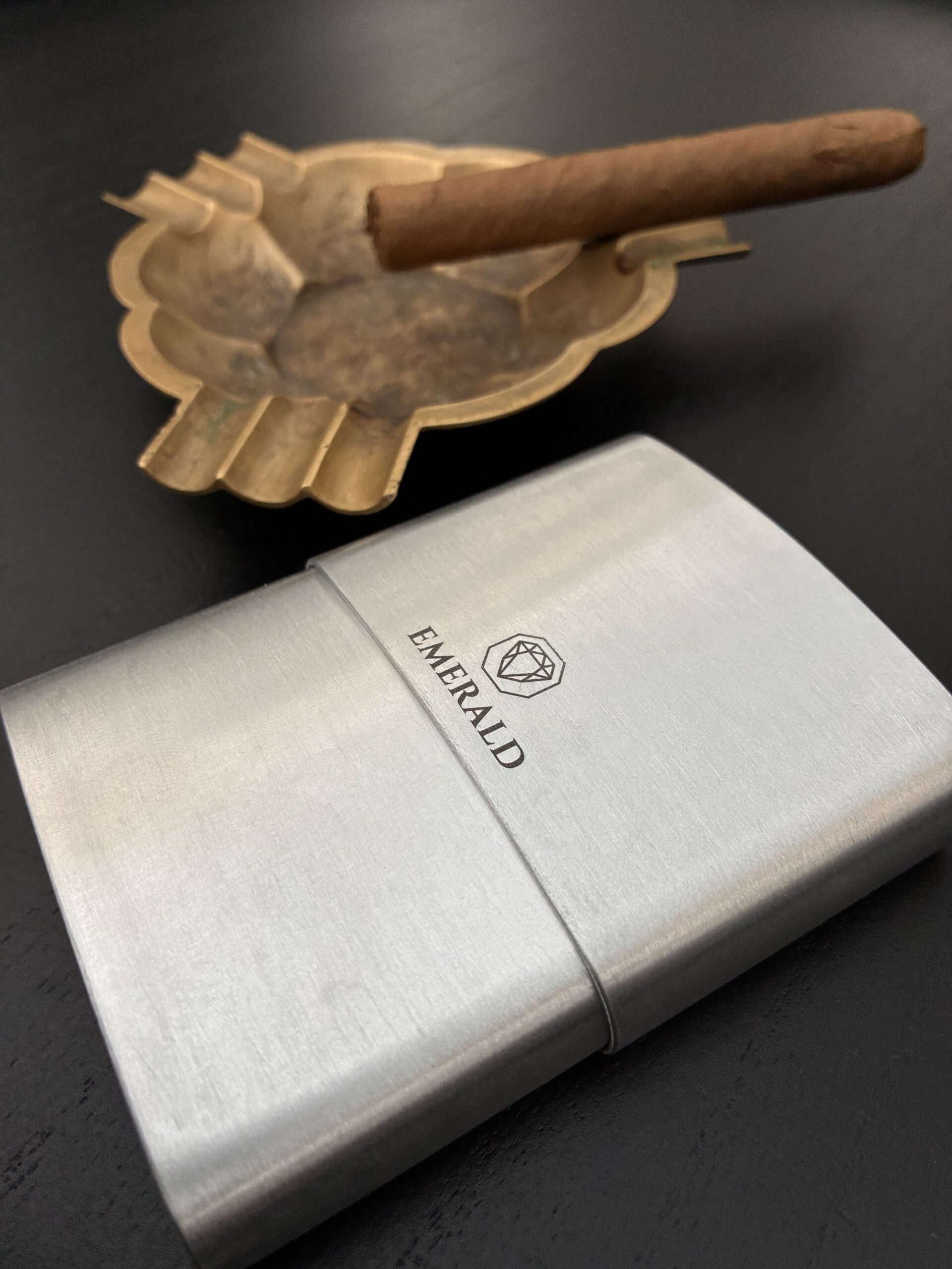 Inspired on the iconic shape of a whiskey hip flask, this tailored cigar case fits comfortably in your pocket, due to its smooth bent shape with rounded corners.